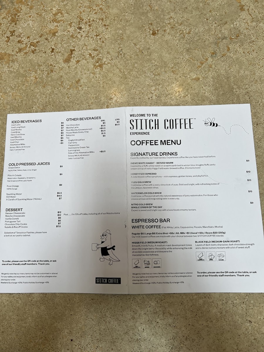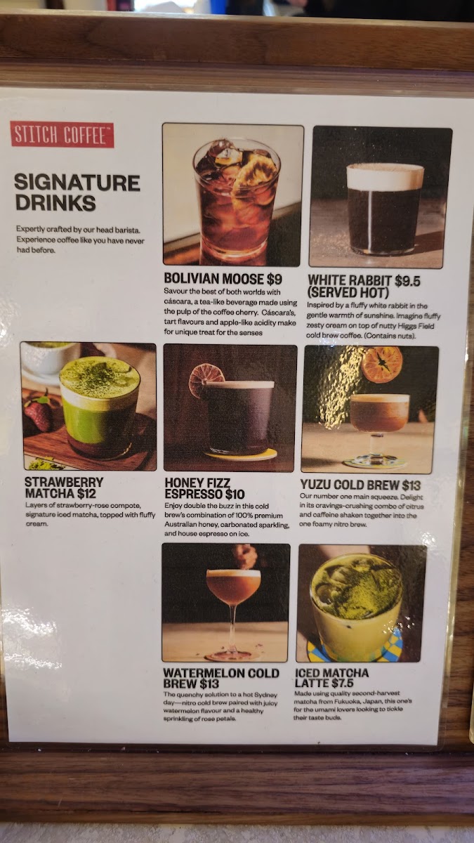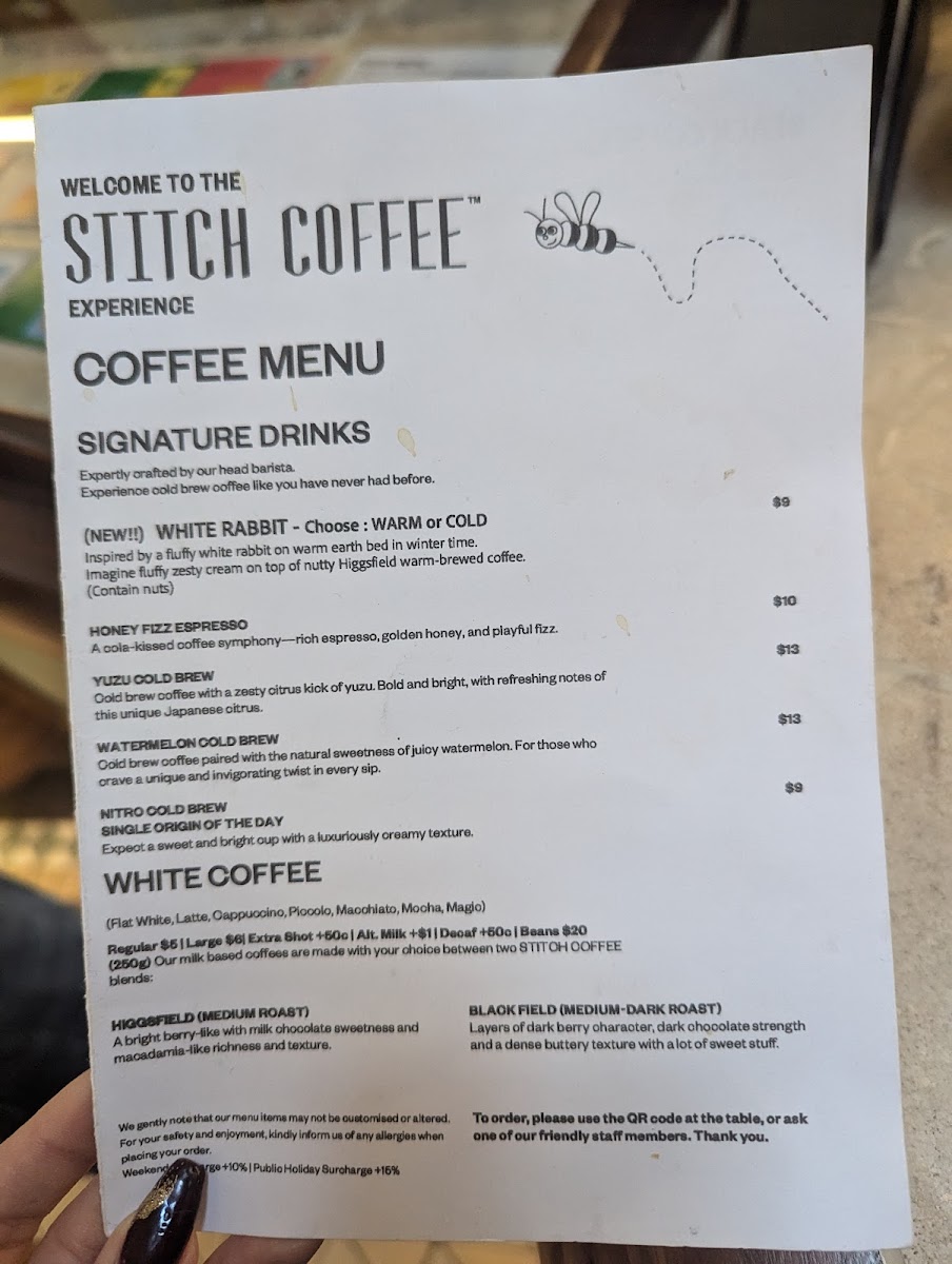 Stitch Coffee QVB Menu