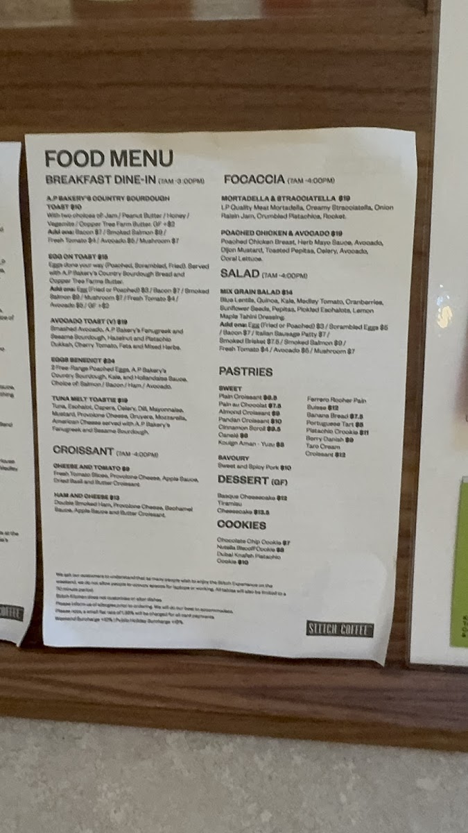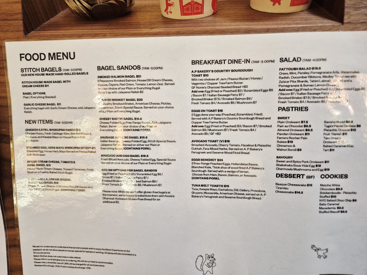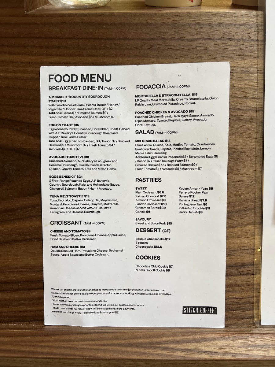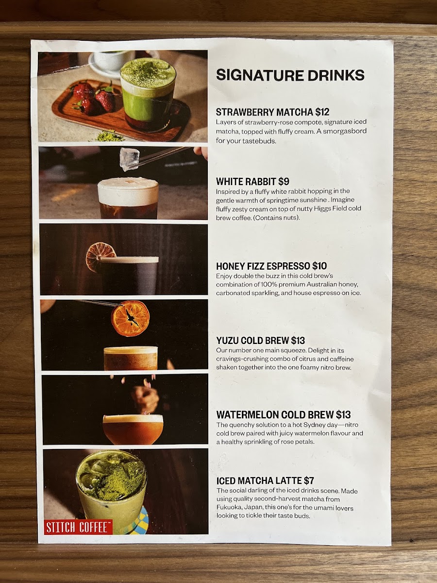Stitch Coffee QVB Menu